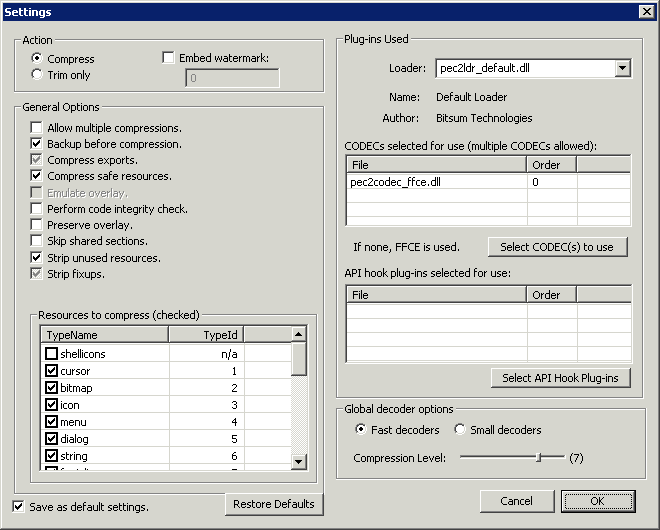 When an checkbox is checked and grayed, it means that PECompact2 should automatically determine the appropriate settings based on the file it is compressing.