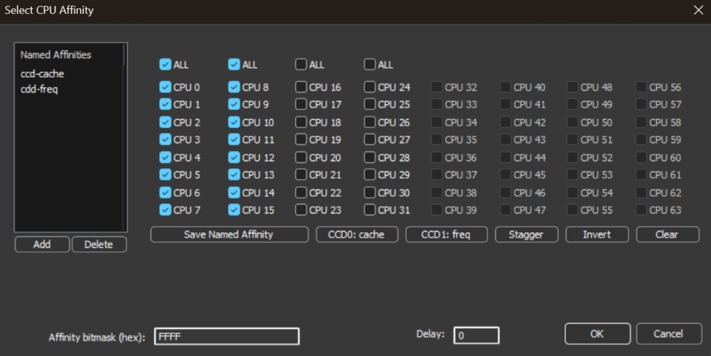 Double-clicking any field will allow in-line editing or bring up a selection dialog, as is the case with CPU Affinities and CPU Sets.